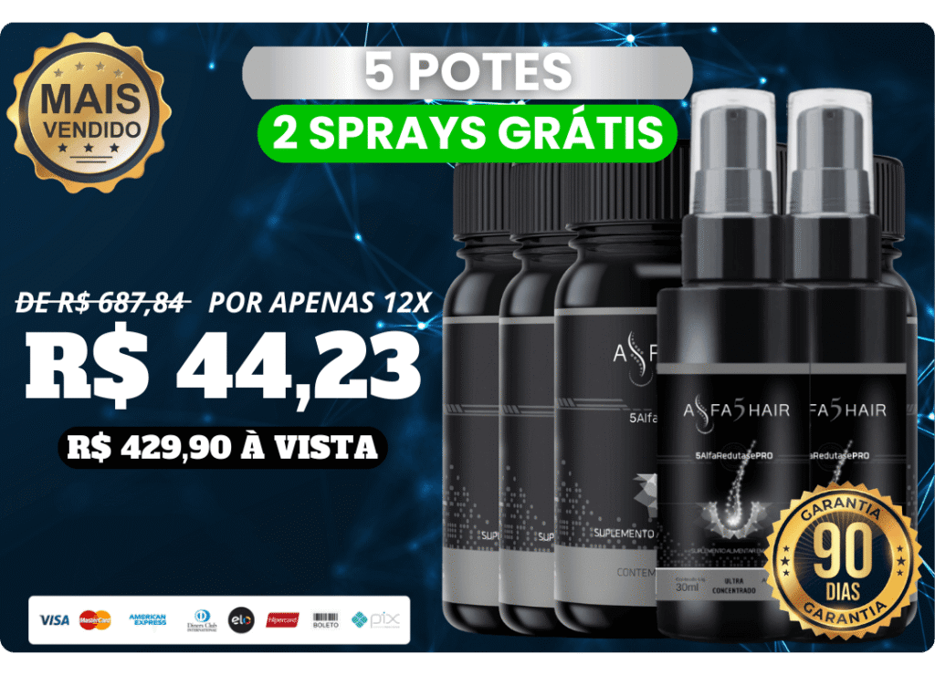 O grande diferencial do Alfa5Hair está em seu spray potencializador de resultados, desenvolvido para aplicação direta no couro cabeludo, promovendo nutrição direcionada e absorção eficiente. Sua fórmula atua nas áreas mais afetadas pela queda, reforçando os efeitos do tratamento e contribuindo para a revitalização dos fios.